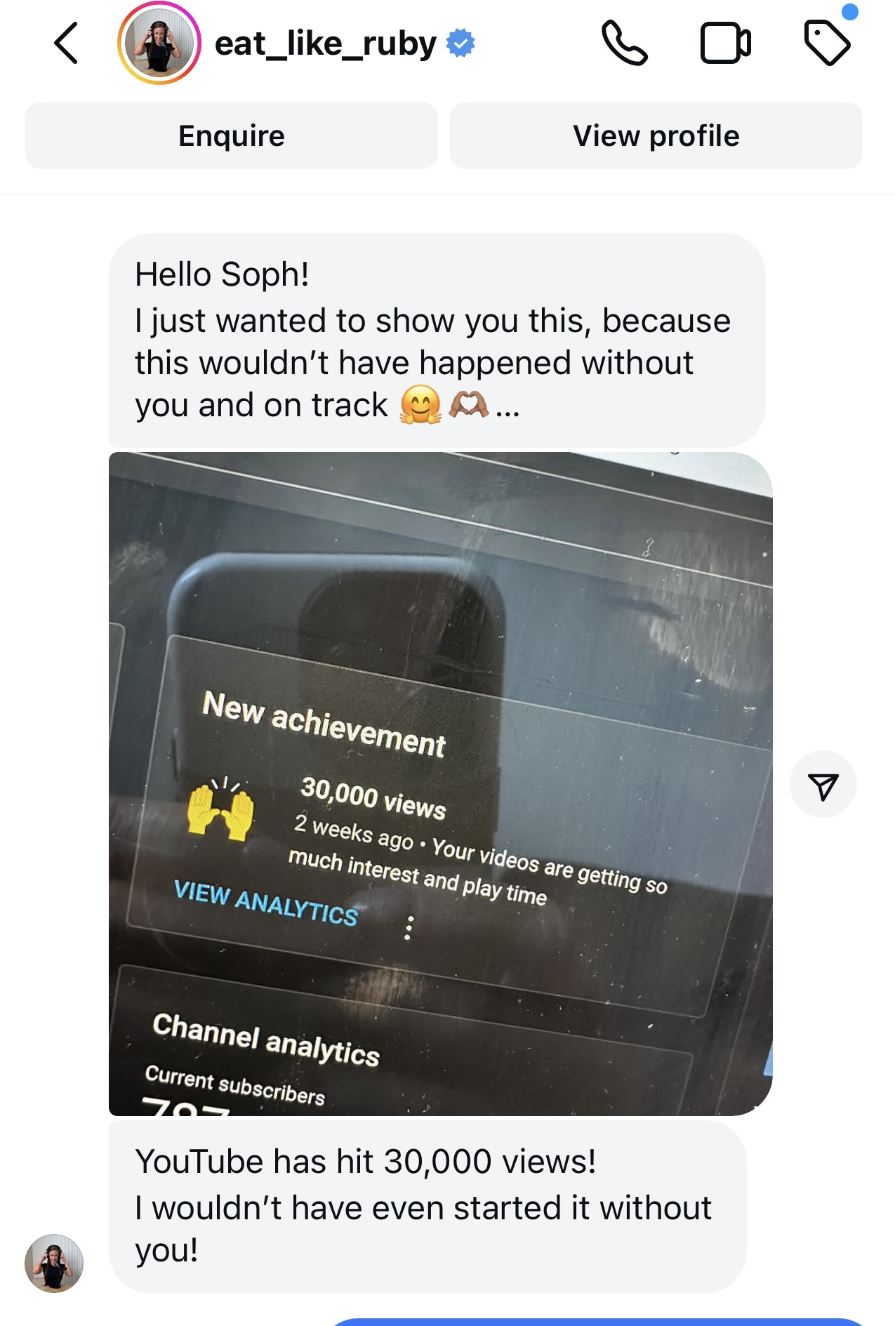 "Sophie’s system turned one hour a fortnight into a multi-platform lead generation machine. It grew my following and positioned me as the go-to in my space."